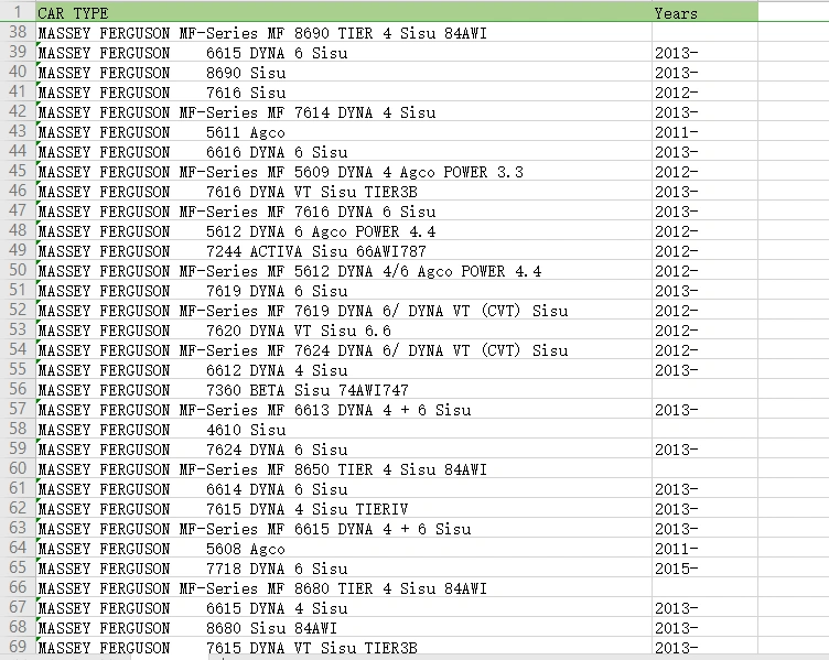 OTHER AGRIC PARTS SUITABLE FOR TRACTOR MODELS DETAILS | ||