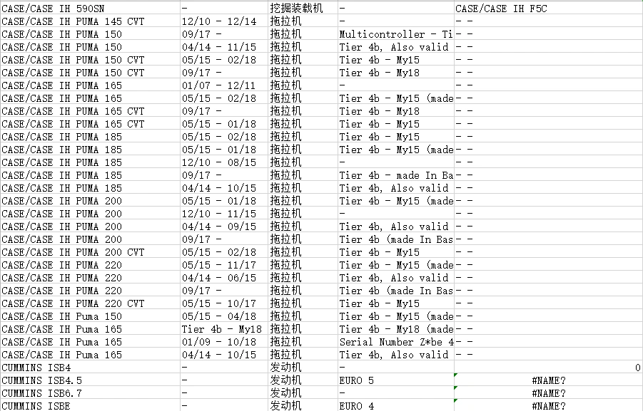 OTHER AGRIC PARTS SUITABLE FOR TRACTOR MODELS DETAILS | ||