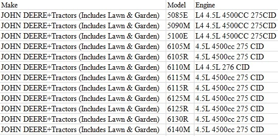 JOHN DEERE+Tractors 5090M | L4 4.5L 4500CC 275CID | |